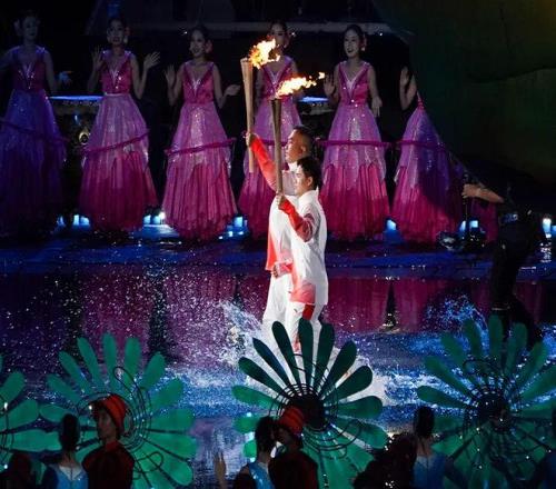 昨晚21时19分,梁伟铿出现在广东奥林匹克体育中心的跑道上,与他一同作为第十五届全国运动会场内火炬传递的是同为广东人的“全国道德模范”赖宣治。他们带着对家乡的深情与对体育的热爱,踏浪前行,将“同心之火”接续传递。