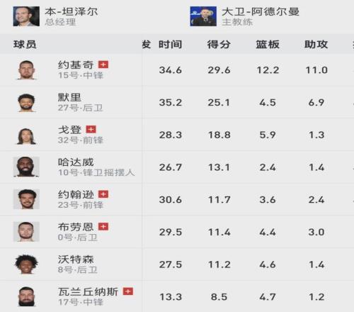 约基奇是左膝过度伸展,他场均29.6分;阿隆·戈登是右腿筋拉伤,他场均18.8分;卡梅伦·约翰逊是右膝挫伤,他场均11.7分;布劳恩是左脚踝严重扭伤,他场均11.4分;瓦兰是右小腿受伤,他场均8.5分。