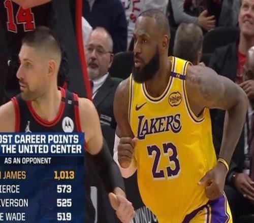客战公牛球员总得分榜:詹姆斯1013分断档领先,皮尔斯573分第2 -
